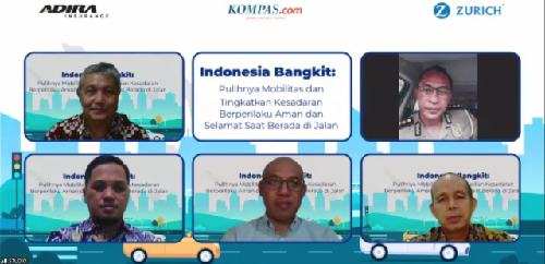 Untuk menyampaikan hasil kajian ini ke seluruh lapisan masyarakat dan meningkatkan wawasan masyarakat akan pentingnya keselamatan berkendara, Adira Insurance menggelar webinar bertajuk “Indonesia Bangkit: Pulihnya Mobilitas dan Tingkatkan Kesadaran Berperilaku Aman dan Selamat Saat Berada di Jalan”, Selasa (30/03/2021) yang turut dihadiri AKBP Danang Sarifudin, SIK., selaku Kasi Produk Dikmas Ditkamsel Korlantas Polri, Rohmat Purnadi selaku Head of Business Digest, Wayan Pariama, Head of Government Relations Adira Insurance serta Darmaningtyas selaku Ketua INSTRAN (Institut Studi Transportasi).