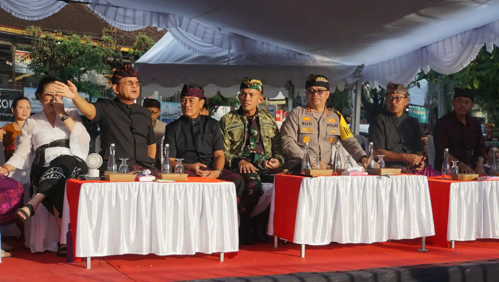 Bupati Sutjidra hadir langsung membuka parade dengan tradisi khas Buleleng, yakni ngoncang. Dalam kesempatan tersebut, ia menegaskan bahwa kehadiran pemerintah tidak hanya sebagai penyelenggara, tetapi juga sebagai penggerak utama agar tradisi tetap hidup, adaptif, dan memiliki daya tarik ke depan.