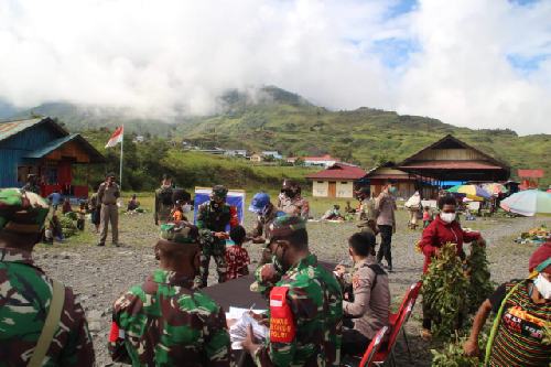 Personel gabungan dari unsur TNI, Polri, Pemerintah Daerah (Pemda) Puncak Jaya dan BPBD melakukan kegiatan operasi dan pembagian masker secara serentak di seluruh wilayah Indonesia. Kegiatan dibagi di dua tempat yaitu Bandara Aminggaru Ilaga Kabupaten Puncak dan Pasar Nagalomuni Kabupaten Puncak Jaya.