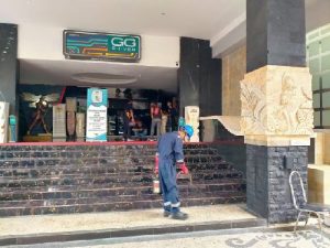 Bagus Suwipra menerangkan sejak pukul 15.00 hingga 20.00 Wita, mulai dari areal parkir, hall, ruang perkantoran, seluruh ruang karaoke dan semua celah juga lorong Boshe di lantai 1 dan 2 dijangkau petugas sanitasi lingkungan untuk melakukan sterilisasi menggunakan swing fogg.