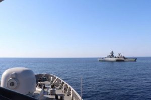 Kapal Perang Republik Indonesia (KRI) Sultan Hasanuddin-366 dengan Komandan Letkol Laut (P) Ludfy, S.T., MMDS sekaligus Dansatgas Maritime Task Force (MTF) TNI Konga XXVIII-L/UNIFIL 2019, melaksanakan Towing Exercise (Towex) dengan kapal perang Jerman FGS Ludwigshafen Am Rhein F-264 saat sedang berpatroli di Area of Maritime Operation (AMO), di Laut Mediterania, Senin (24/08/2020).