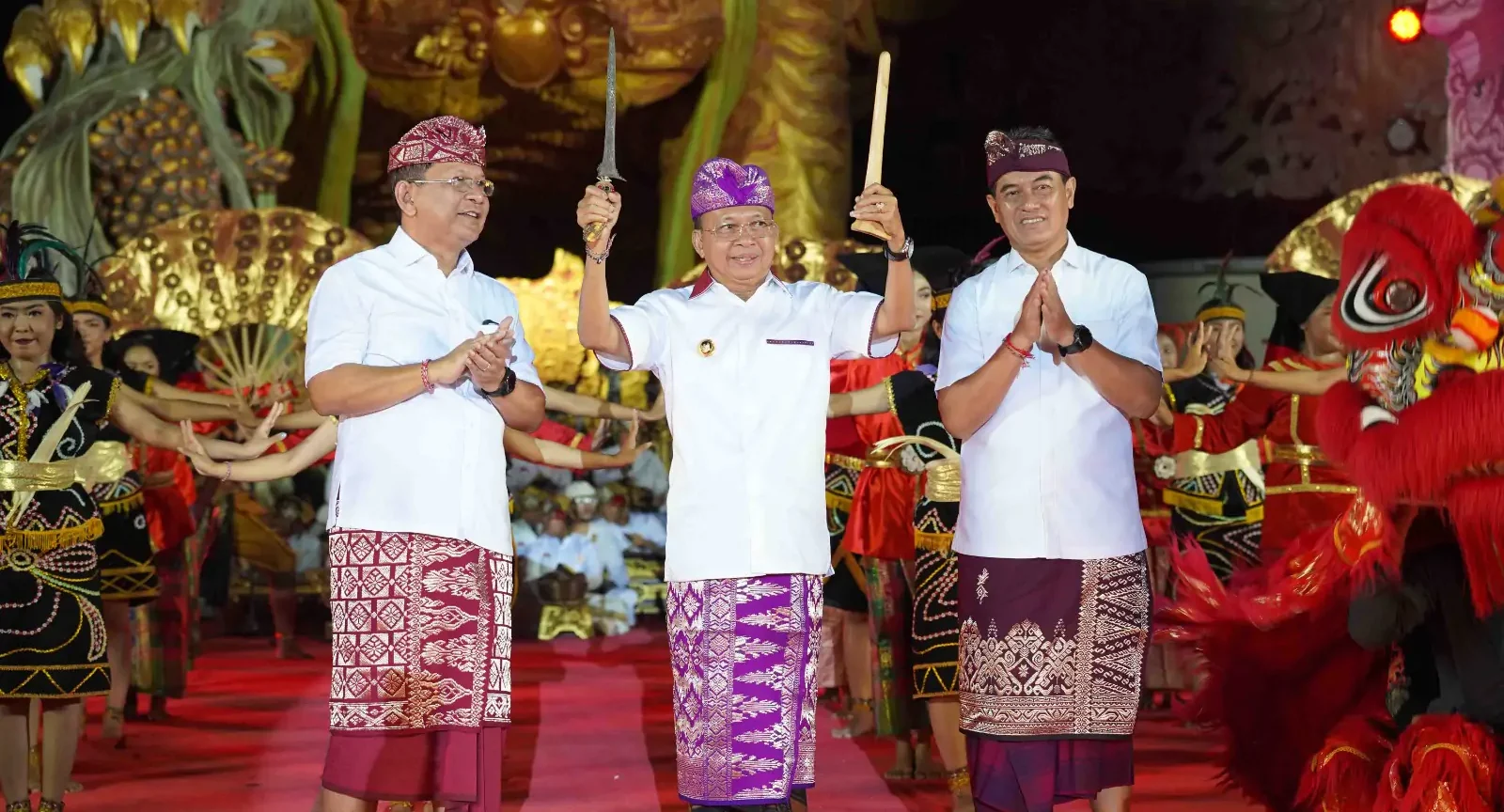 Singaraja ( Penabali.com) – Dalam rangka memperingati Hari Ulang Tahun (HUT) ke 421 Kota Singaraja, Pemerintah Kabupaten (Pemkab) Buleleng menggelar Malam Apresiasi Seni. Malam Apresiasi Seni yang berlangsung dari tanggal 5 hingga 8 April 2025 ini dibuka secara resmi oleh Gubernur Bali Wayan Koster didampingi Bupati Buleleng I Nyoman Sutjidra dan Wakil Bupati Buleleng Gede Supriatna dengan ditandai penghunusan keris di Ruang Terbuka Hijau (RTH) Taman Bung Karno, Kelurahan Sukasada, Sabtu (5/4/2025).
