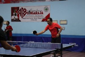 Buleleng (Penabali.com) – Sebanyak 36 pasangan yang berasal dari Satuan Kerja Perangkat Daerah (SKPD) dan Badan Usaha Milik Daerah (BUMD) se-Kabupaten Buleleng mengikuti Kejuaraan Tenis Meja Singaraja Cup Tahun 2022. Kejuaraan ini digelar serangkaian HUT ke-418 Kota Singaraja.