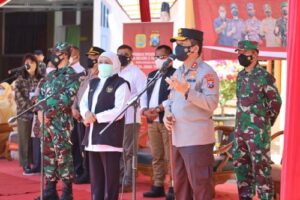 Surabaya (Penabali.com) – Gubernur Jawa Timur Khofifah Indar Parawansa, Pangdam V/Brawijaya Mayjen TNI Suharyanto, Kapolda Jatim Irjen Pol. Nico Afinta, Kajati Jatim Mohammad Dofir, dan Kabinda Jatim Marsma TNI Rudy Iskandar, serta Pejabat Utama Polda Jatim dan Kodam Brawijaya, melakukan pengecekan serbuan vaksinasi di SMAN 2 Surabaya, Sabtu (14/08/2021).