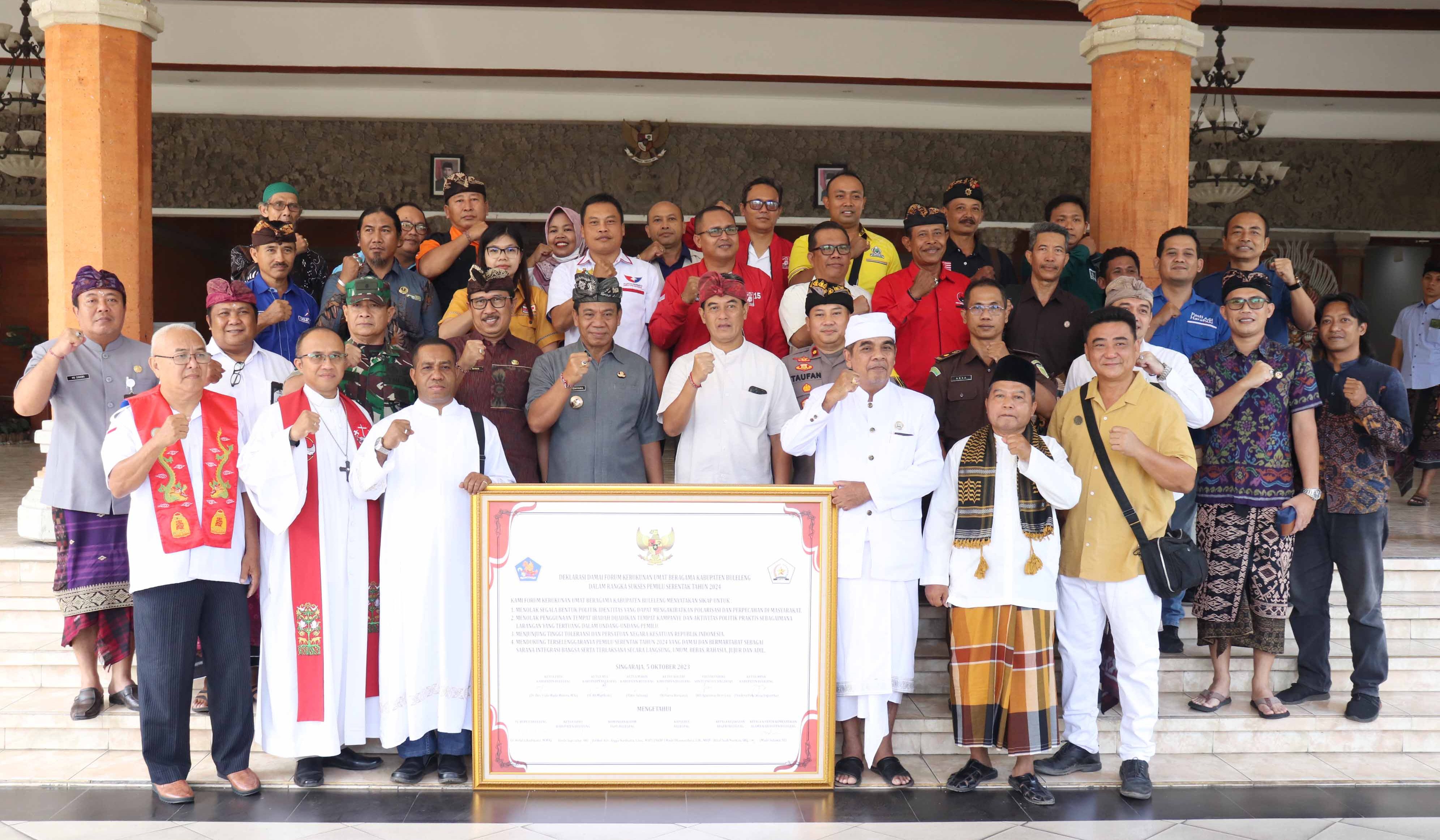 Singaraja ( Penabali.com ) – Forum Kerukunan Umat Beragama (FKUB) Kabupaten Buleleng berkomitmen menjaga dan mewujudkan Pemilu Bermartabat di tahun 2024 mendatang. Hal itu diwujudkan dalam deklarasi damai hari ini bertempat di Ruang Rapat Lobby Kantor Bupati Buleleng, Kamis (5/10).