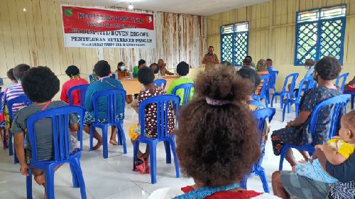 Satuan Tugas TNI Manunggal Membangun Desa (Satgas TMMD) Reguler ke-109 Kodim 1711/BVD bersama Dinas TPHP (Teknologi Pengolahan Hasil Pertanian) Boven Digoel menggelar penyuluhan ketahanan pangan kepada anggota Kelompok Tani Kampung Kakuna.