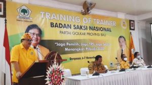 Sugawa Korry yang juga Wakil Ketua DPRD Bali ini lanjut mengingatkan kembali para saksi agar membangun semangat mensukseskan jalannya proses demokrasi termasuk mensukseskan dan memenangkan pasangan calon kepala daerah yang diusung Partai Golkar.