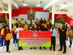 Acara penyerahan bantuan 50 paket sembako dilakukan dengan tetap menjalankan protokol kesehatan dengan menjaga jarak, memakai masker, dan mencuci tangan pakai sabun atau hand sanitizer sebelum memasuki aula kampus Stispol Wira Bhakti.