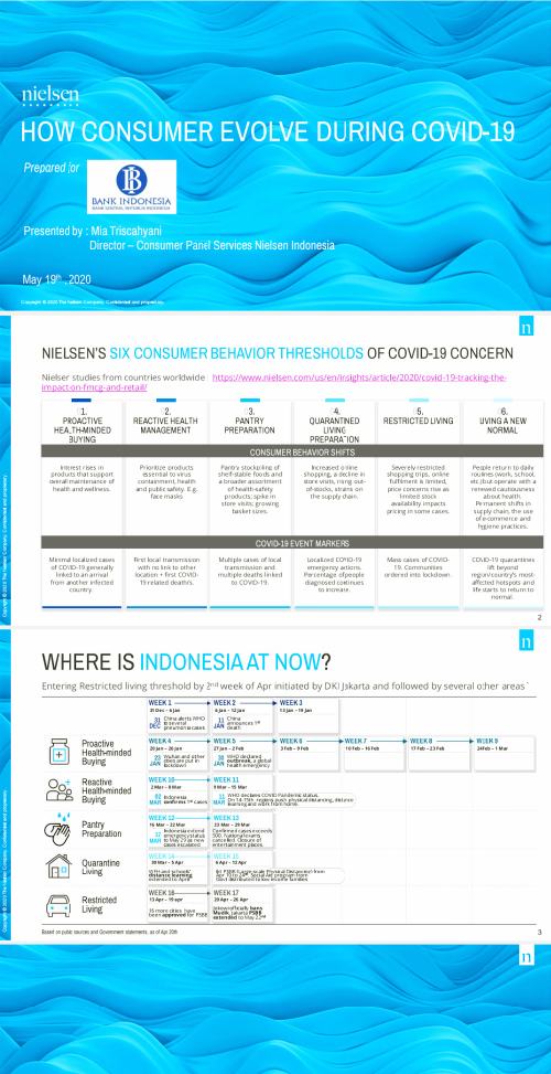 Deputi Kepala Perwakilan BI Provinsi Bali Rizki Ernadi Wimanda, disela kegiatan SURYA (Survei Bicara) yang merupakan kegiatan disseminasi hasil-hasil survei Bank Indonesia, yang dilaksanakan secara virtual, Selasa (19/05/2020), mengatakan berdasarkan hasil survei dari Nielsen Indonesia, saat ini masyarakat cenderung untuk mengurangi aktivitas berkunjung ke supermarket serta kegiatan makan di luar rumah. Masyarakat mengganti menjadi aktivitas memasak sendiri di rumah serta melakukan pembelian kebutuhan secara online. Kondisi ini mengakibatkan peningkatan pengeluaran konsumsi rumah tangga untuk telekomunikasi maupun FMCG. Sebaliknya, pengeluaran untuk transportasi, pendidikan, serta leisure (wisata, makan di luar) mengalami penurunan.