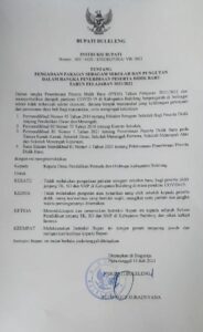 Instruksi tersebut tertuang dalam Instruksi Bupati Buleleng Nomor 420 / 6420 / DISDIKPORA / VII / 2021 Tentang Pengadaan Pakaian Seragam Sekolah dan Pungutan Dalam Rangka Penerimaan Peserta Didik Baru Tahun Pelajaran 2021/2022. Naskah tersebut telah ditandatangani serta terbit dan berlaku pada hari Kamis, 15 Juli 2021.