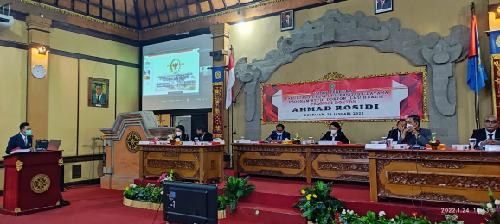 Ujian Terbuka Promosi Doktor yang berlangsung selama 2 jam ini dipimpin Wakil Dekan Bidang Akademik dan Perencanaan, Dr. Desak Putu Dewi Kasih, S.H., M.Hum., Prof. Dr. I Made Subawa, S.H., M.Hum., selaku Promotor, Dr. Gede Marhaendra Wija Atmaja, S.H., M.Hum., selaku Kopromotor 1, Dr. Ni Luh Gede Astariyani, S.H., M.H., selaku Kopromotor II, serta diuji oleh 4 dewan penguji/penyanggah lainnya.