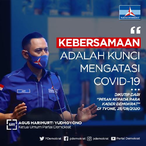 Ketua Umum Patai Demokrat, Agus Harimurti Yudhoyono (AHY) mengatakan untuk menghadapi krisis, dan ujian sejarah ini perlu solusi, kerja keras, dan langkah nyata. Selain itu juga perlu upaya lanjutan dan langkah efektif untuk mengatasi pandemi covid-19, agar bisa segera menghentikan sebarannya sehingga lebih banyak jiwa manusia yang bisa selamat.