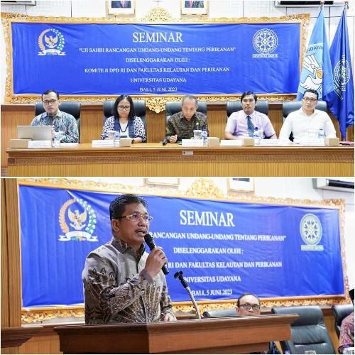 Badung (Penabali.com) – Komite II DPD RI bekerjasama dengan Fakultas Kelautan dan Perikanan Universitas Udayana (Unud) menyelenggarakan Seminar “Uji Sahih Rancangan Undang-Undang Tentang Perikanan”, bertempat di Ruang Bangsa Gedung Rektorat Kampus Unud Bukit Jimbaran, Senin (5/6/2023).