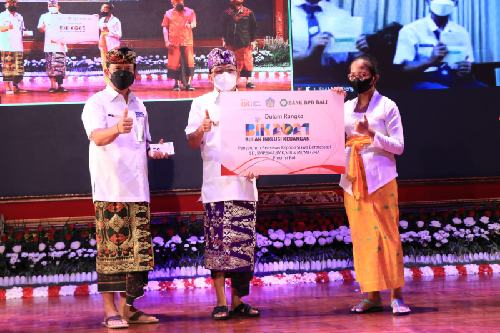 Penyerahan beasiswa yang diperuntukkan bagi siswa yang memperoleh juara umum I, II, dan III dalam bentuk Buku Tabungan Simpanan Pelajar (Simpel) BPD Bali diserahkan langung Gubernur Koster kepada 53 perwakilan siswa yang hadir langsung di Gedung Ksiraarnawa, Taman Budaya, Art Centre, Denpasar, Rabu (13/10/2021).