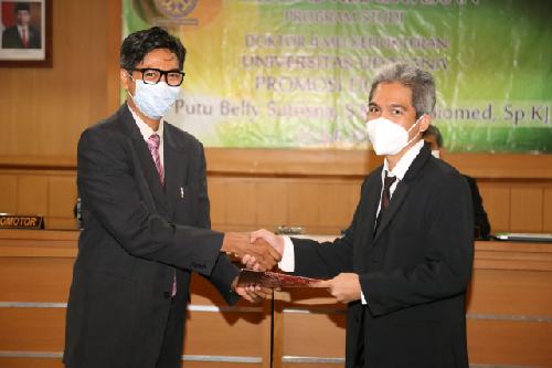 Pada ujian kali ini Dr. dr. I Putu Belly Sutrisna, S.Ked., M.Biomed, Sp. KJ dinyatakan lulus sebagai Doktor Lulusan ke-352 Program Studi Doktor Ilmu Kedokteran Fakultas Kedokteran Universitas Udayana dengan predikat CUMLAUDE