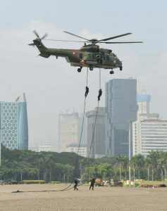Latihan simulasi pengamanan ini langsung dipantau Panglima TNI Marsekal TNI Hadi Tjahjanto, S.I.P., didampingi Asops Panglima TNI Mayjen TNI Ganip Warsito, S.E., M.M., Aslog Panglima TNI Marsda TNI Kukuh Sudibyanto, Kapuspen TNI Mayjen TNI Sisriadi dan Pangdam Jaya Mayjen TNI Eko Margiyono.