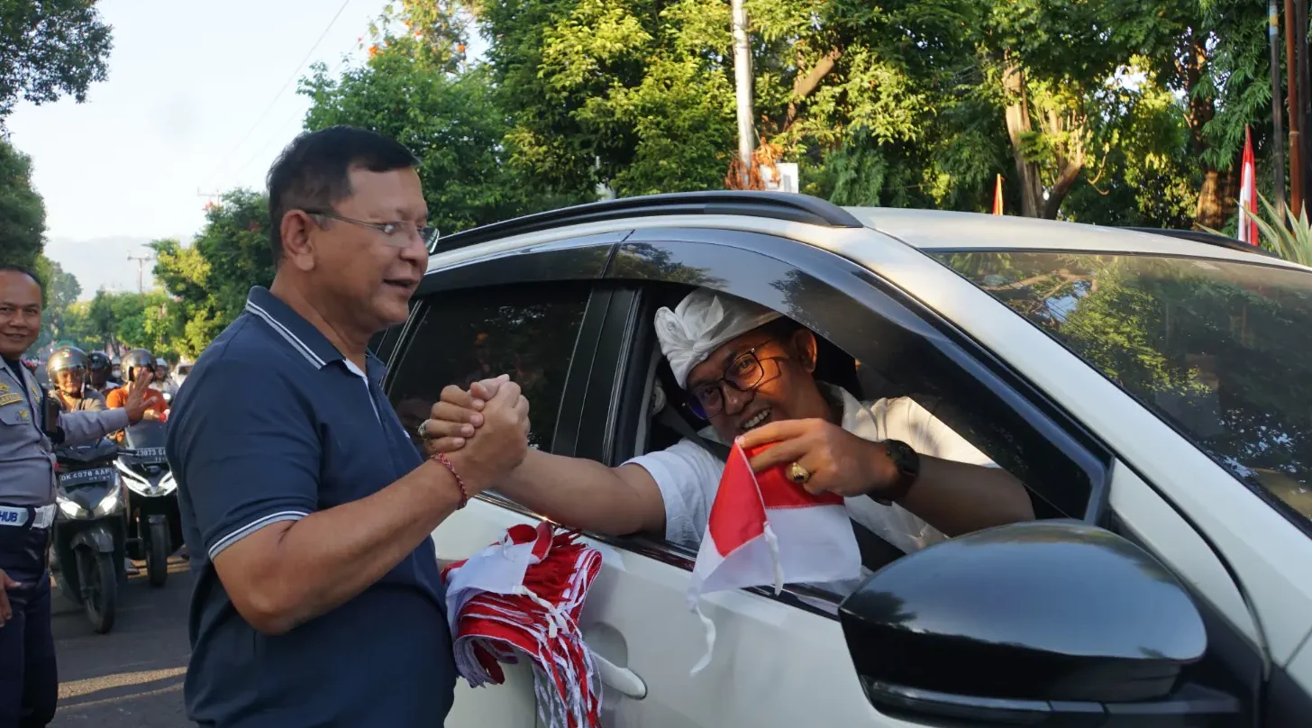Bupati Sutjidra juga mengajak seluruh peserta untuk membagikan bendera kepada masyarakat yang melintas di depan Taman Kota Induk sebagai simbol penyebaran semangat patriotisme.