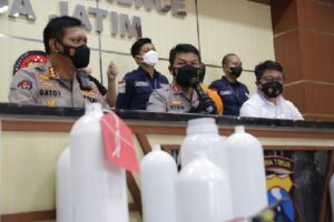 Kapolda Jawa Timur Irjen Pol. Nico Afinta didampingi Kabid Humas Polda Jatim dan Dirreskrimsus Polda Jatim menjelaskan, Ditreskrimsus Polda Jatim berhasil mengungkap kasus mengedarkan atau menjual alat kesehatan tanpa izin edar, dengan modus operandi bahwa tabung apar dimodifikasi yang kemudian menjadi tabung oksigen yang dijual kepada masyarakat seharga 4 juta.
