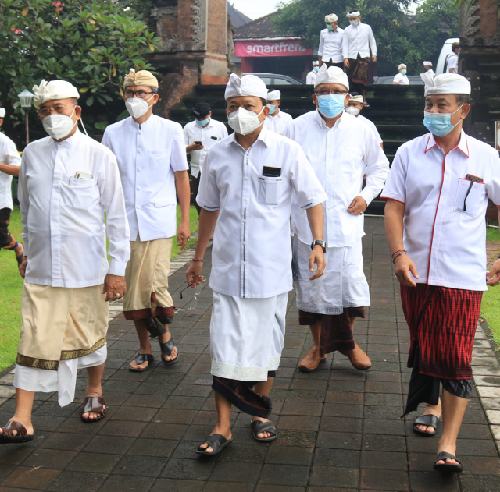 Dengan menerapkan protokol kesehatan yang ketat, Pura pertama yang menjadi tujuan persembahyangan Gubernur Bali asal Desa Sembiran, Buleleng itu, dimulai dari Pura Dasar Bhuana Gelgel, Kecamatan Klungkung. Turut mendampingi, Bupati Karangasem terpilih Gede Dana dan Wakil Bupati Karangasem Wayan Artha Dipa, beserta Penyarikan Agung MDA Bali, Ketut Sumarta, dan Rektor UNHI Prof. Dr. I Made Damriyasa, M.S.
