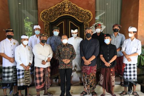 Gubernur Bali memberikan dukungan ini secara langsung kepada Pasikian Yowana Majelis Desa Adat (MDA) Provinsi, Kabupaten/Kota se-Bali dan seniman, Rabu (16/02/2022), di Jaya Sabha, Denpasar didampingi Kadis Pemajuan Masyarakat Adat (PMA) Provinsi Bali, I Gusti Agung Ketut Kartika Jaya Saputra.