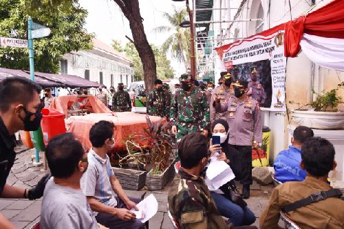 Panglima TNI yang didampingi Kapolri Jenderal Pol. Listyo Sigit Prabowo sempat berdialog dengan Camat Taman Sari, Risan H. Mustar.