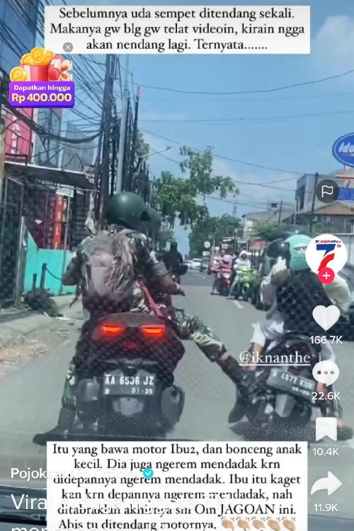 Jakarta (Penabali.com) – Tidak butuh waktu lama, dalam hitungan jam, TNI berhasil menemukan dan menangkap oknum prajurit yang terekam video menendang motor seorang Ibu yang sedang membonceng anaknya di jalan raya. Oknum prajurit TNI tersebut adalah Praka ANG yang merupakan anggota Denhanud 471 Wing 1 Kopasgat.