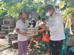 “Saya samgat prihatin melihat kondisi mereka. Jadi saya bantu beras, telur, dan beberapa vitamin, semoga dapat sedikit meringankan beban keluarganya,” ujar pelaku seni tradisi Bali ini.