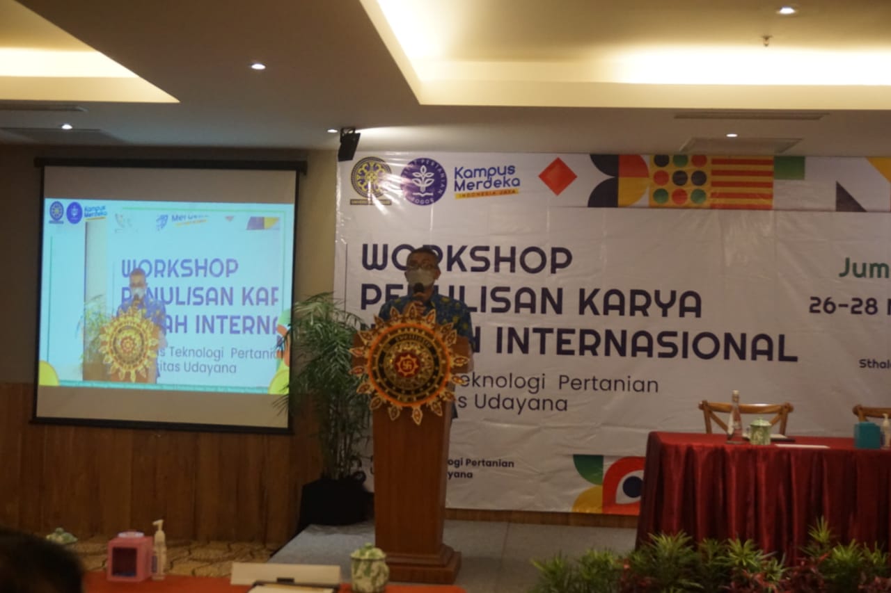 Gianyar (Penabali.com) – Fakultas Teknologi Pertanian (FTP) Universitas Udayana menyelengarakan kegiatan ilmiah berupa workshop Penulisan Karya Ilmiah Internasional secara hybrid dan streaming Youtube. Workshop ini diselenggarakan atas kerjasama Unud dengan IPB Bogor pada 27 November 2021, bertempat di Sthala Pertofolio Hotel Ubud.