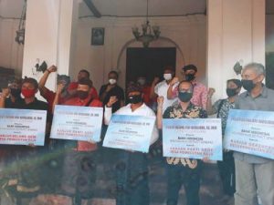 Penyerahan secara simbolis dilaksanakan di Puri Gerenceng, Pemecutan, Denpasar, Minggu (09/08/2020). Hadir pada kesempatan ini, penglingsir Puri Gerenceng yang juga anggota Komisi III DPRD Bali dari Fraksi PDI Perjuangan, A.A. Ngurah Adhi Ardhana, Ketua DPC PDI Perjuangan Kota Denpasar I Gusti Ngurah Gede, Sekretaris DPD PDI Perjuangan Provinsi Bali IGN Jaya Negara, serta anggota DPRD Kota Denpasar dari Fraksi PDI Perjuangan Nyoman Sumadika.
