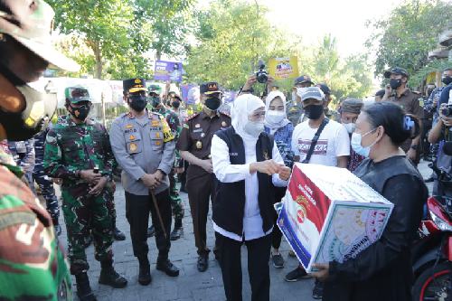 Surabaya (Penabali.com) – Gubernur Jawa Timur Khofifah Indar Parawansa, Pangdam V/Brawijaya Mayjen TNI Suharyanto, Panglima Komando Armada II (Pangkormada II) Laksamana Muda TNI Iwan Isnurwanto, Kapolda Jatim Irjen Pol. Nico Afinta, didampingi Kabinda Jatim Marsma TNI Rudy Iskandar, Sekda Provinsi Jatim, Pejabat Utama Polda Jatim dan Pejabat Utama Kodam V/Brawijaya, membagikan 3.000 paket sembako dan masker secara langsung kepada warga Bulak Banteng dan Kenjeran, Surabaya, Minggu (18/07/2021).