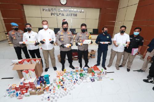 “Kami mengingatkan masyarakat untuk tidak melakukan hal seperti itu, mengedarkan obatan-obatan tanpa dilengkapi dokumen resmi. Kkami mengucapkan terima kasih kepada masyarakat yang aktif memberikan informasi,” ujar Kapolda Jatim.
