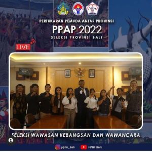 Untuk menyongsong pelaksanaan Pertukaran Pemuda Antar Provinsi (PPAP) yang akan dilaksanankan pada bulan Juni 2022, Pemerintah Provinsi Bali dalam hal ini Dinas Pendidikan Kepemudaan dan Olahraga dan juga DPD PPMI Provinsi Bali melaksanakan seleksi peserta yang lolos dalam tahapan seleksi wawasan kebangsaan dan tes wawancara yang diikuti 10 orang peserta yang berasal dari seluruh kabupaten/kota se-Bali.
