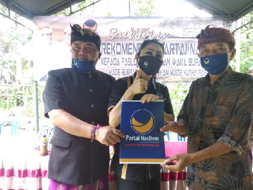 Penyerahan rekomendasi didampingi Sekretaris DPW Partai NasDem Bali Nyoman Winatha, Bendahara DPW Partai NasDem Bali Maria Carolina Latumahina dan jajaran. Turut pula Ketua Bidang Pariwisata DPP Partai NasDem Ida Bagus Oka Gunastawa.