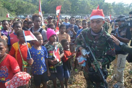 Para Sinterklas membawa karung-karung bingkisan Natal yang siap dibagikan kepada masyarakat. Suasana bahagia dan keakraban menyelimuti Bandara Mozes Kilangin. Masyarakat pun berbaur dengan para prajurit, cermin kemanunggalan TNI-Rakyat. (red)