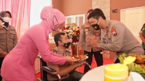 “Hari ini kami mewujudkan program semangat, salah satunya adalah anggota kami AKBP Bambang yang mengalami sakit stroke, dan kami menyisihkan sebagian dari apa yang kita miliki untuk membantu yang bersangkutan. Program-program ini akan nanti diteruskan kepada anggota-anggota yang mempunyai masalah, sehingga kami ingin meringankan beban anggota dan harapannya mereka bisa bekerja kembali dengan baik,” ujar Kapolda Jatim.