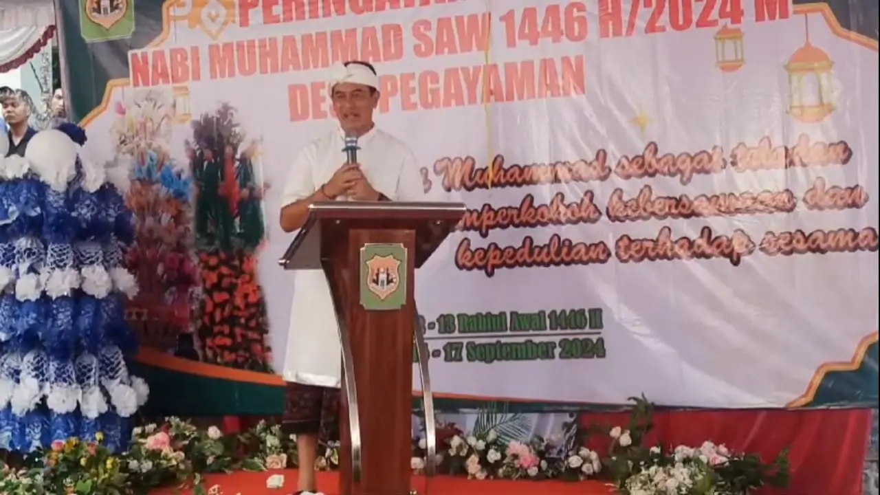 Singaraja (Penabali.com) Bakal calon Wakil Bupati Buleleng yang diusung oleh Koalisi PDI Perjuangan, Gede Supriatna, menghadiri perayaan Maulid Nabi Muhammad SAW 1446H di Desa Pegayaman, Kecamatan Sukasada, pada Selasa (17/8). Supriatna menunjukkan minat besar pada tradisi, adat, dan budaya Desa Pegayaman, yang mendorongnya merancang program pengembangan kawasan wisata religi dan budaya di desa Pegayaman.