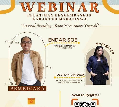 Denpasar (Penabali.com) – Himpunan Mahaiswa Ilmu Komunikasi Universitas Udayana mengadakan webinar pelatihan pengembangan karakter mahasiswa melalui zoom meetings, dengan mengusung tema “Personal Branding: Know More About Yourself“, Sabtu (4/6/2022). Pelatihan menghadirkan pembicara Endar Soe yang…