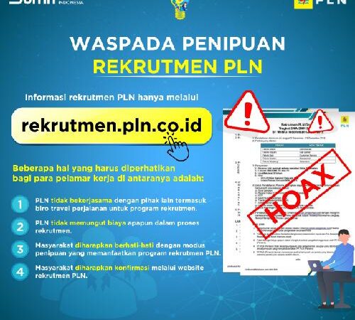PT PLN (Persero) menghimbau masyarakat untuk berhati-hati terhadap maraknya penipuan terkait rekrutmen yang mengatasnamakan PLN. Executive Vice President Corporate Communication and CSR PLN Agung Murdifi menyatakan, PLN tidak melakukan korespondensi terkait rekrutmen dan tidak memungut…