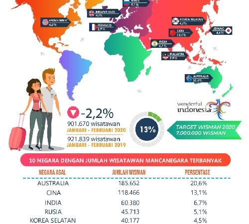 Januari-Februari 2020, Turis Mancanegara Masuk Bali via Bandara Turun 2,2%