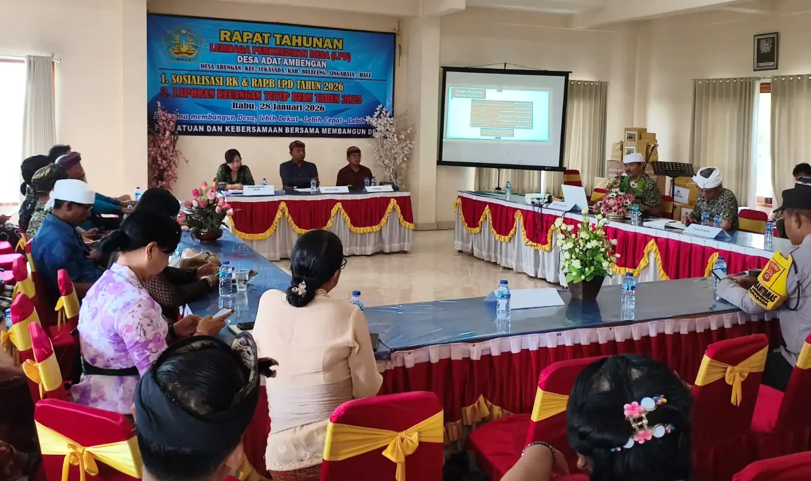 Singaraja (Penabali.com) – Lembaga Perkreditan Desa (LPD) Desa Adat Ambengan, Kecamatan Sukasada, menggelar rapat tahunan dalam rangka penyampaian laporan keuangan tutup buku tahun 2025 sekaligus sosialisasi Rencana Kerja (RK) dan Rencana Anggaran Pendapatan dan Belanja (RAPB) tahun 2026, Rabu (28/1).