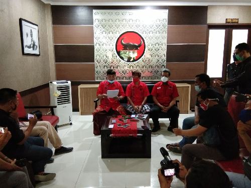 Wakil Ketua DPD PDI Perjuangan Provinsi Bali Wayan Sutena didampingi Wakil Sekretaris DPD PDI Perjuangan Provinsi Bali Made Suparta dalam keterangan persnya kepada awak media di Sekretariat DPD PDI Perjuangan Provinsi Bali, Jumat (04/12/2020) pagi menerangkan ketiganya diberikan sanksi organisasi karena dinilai melanggar kode etik dan disiplin partai, yang dikategorikan sebagai pelanggaran berat.